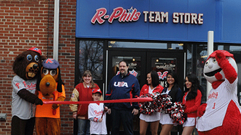 Fans began lining up early to get their hands on some great new R-Phils merchandise. R-Phils GM Scott Hunsicker welcomed everyone out and at 10:00 a.m., Mike Stoudt Jr., the Redner’s R-Phils Kids Club member who won an R-Phils Phan Pack, cut the ceremonial ribbon in front of the brand-new store.